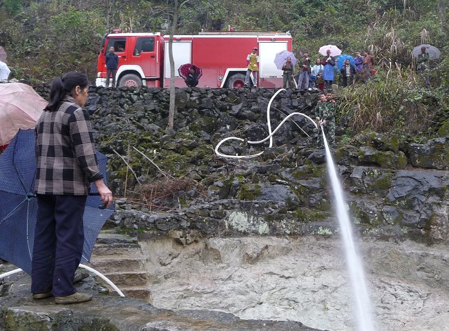 金城江區(qū)保平鄉(xiāng)元洞村號洞屯100多位村民長期依靠一個330立方米的集雨水柜蓄水供給。由于持續(xù)干旱,去年12月,該水柜集水已干枯見底,群眾飲水十分困難。保平鄉(xiāng)黨委、政府立即啟動抗旱應急預案,一方面組織群眾采取自救措施,一方面積極與消防部門聯(lián)系利用消防車送水救援。 近日,金城江消防大隊派出消防車,在山區(qū)道路上爬行2個多小時后,把8噸水注入水柜,解決了該屯群眾用水燃眉之急。